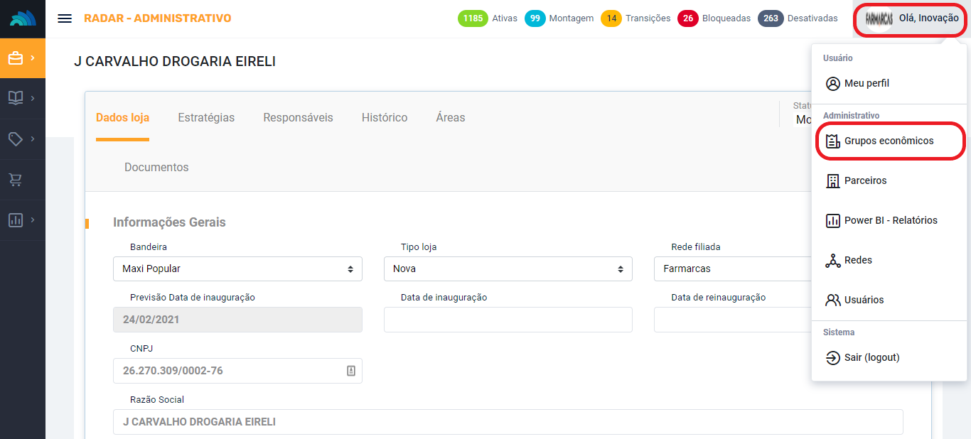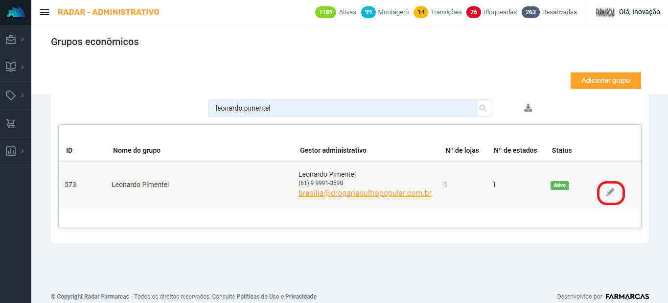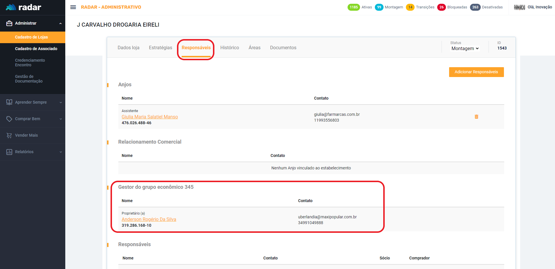 Em “Responsáveis“, localizar o campo “Gestor do grupo econômico” para verificar o nome do responsável do Grupo Econômico