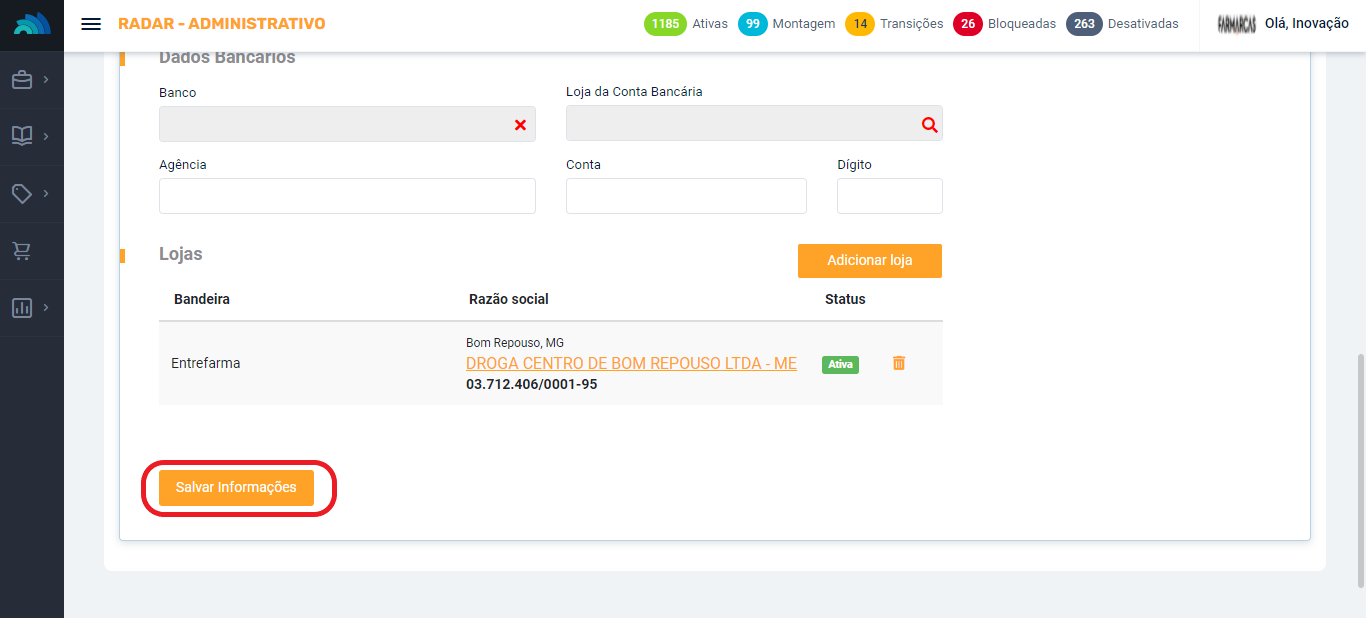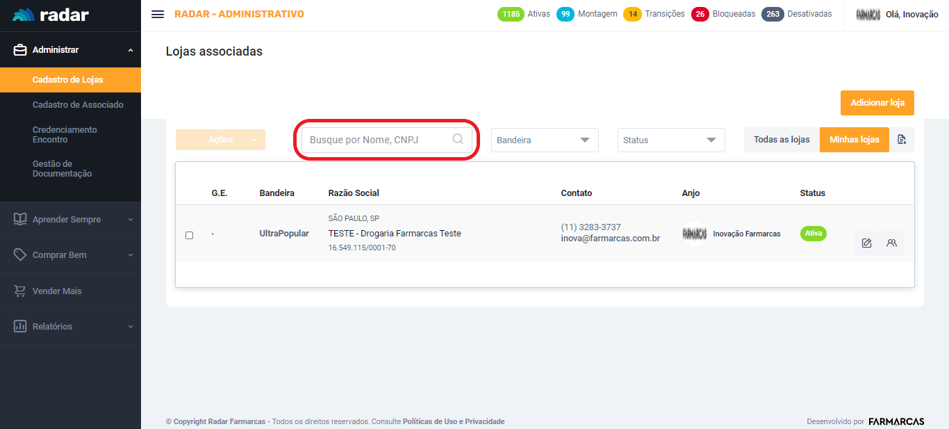 Inserir o CNPJ da loja e clicar em “Buscar” e depois em “Adicionar”