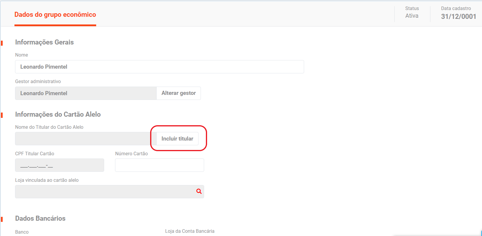 Todo grupo econômico precisa ter um responsável pelo cartão Alelo, podendo ser o próprio gestor do grupo econômico ou algum outro responsável indicado por ele.