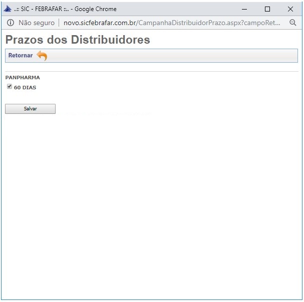 Todos os distribuidores e prazos estarão nesta tela, verifique os prazos e clicar em “Salvar