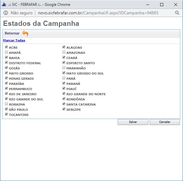 Selecionar os estados atendidos pela distribuidora ou estados específicos caso a campanha/oferta seja apenas para alguns.