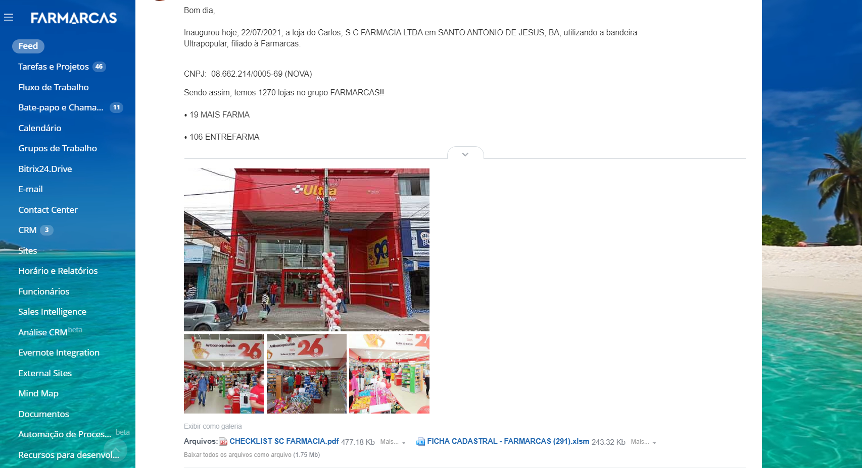 Publicar no Bitrix e anexar as fotos da inauguração e o PDF do check list: