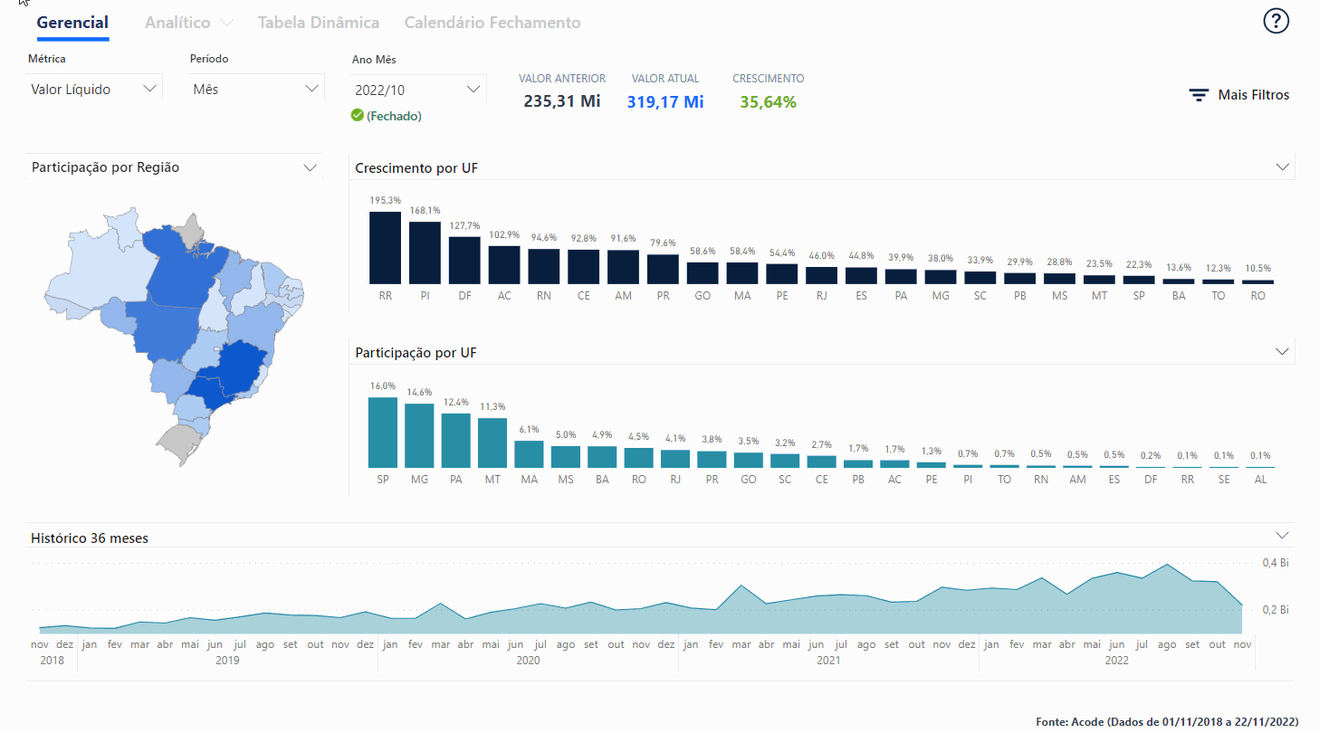 Após a autenticação, no menu lateral à esquerda vá em Relatórios, e selecione o relatório Dashboard de Compra (Acode)