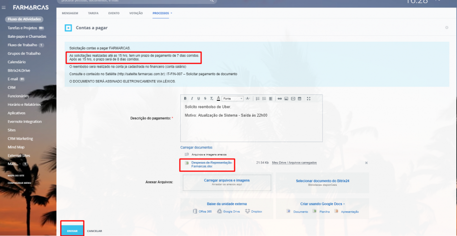 Quando os colaboradores compram algo em nome da Farmarcas e encaminham a Nota Fiscal e Boletos para o Financeiro efetuar o pagamento.