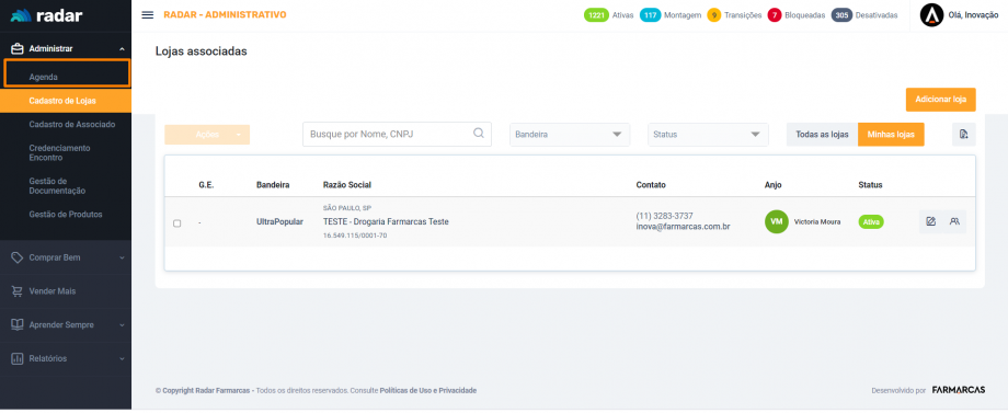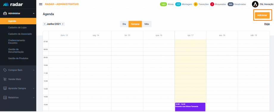 A Agenda Radar é um ambiente de cadastro de compromissos do Associado com a Farmarcas, onde será possível a visualização de todos os compromissos centralizado em um único lugar. Além do acompanhamento das confirmações das reuniões/ eventos.