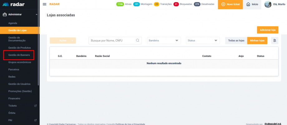 - Ao cadastrar um banner para o associado, é necessário logar o radar associado e pegar o link do destino.