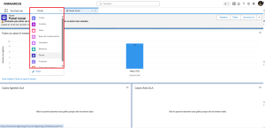Geralmente, os casos mais recentes aparecem primeiro. Para visualizar todos os casos abertos, clique na setinha e selecione essa opção ou vá diretamente para o filtro da sua área, caso ainda não tenha personalizado um espaço próprio.