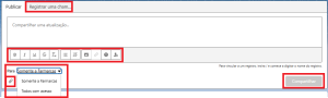 Além da opção de publicar uma mensagem, há também a opção de registrar uma chamada caso o contato tenha sido feito por outro canal, como telefone, WhatsApp ou similares.