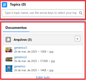 Os primeiros arquivos enviados aparecem nesta seção, enquanto arquivos enviados posteriormente (pelo feed) ficam registrados no feed para manter a organização e facilitar o acompanhamento.