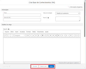 Título: Nome do artigo que será exibido na Base de Conhecimento.