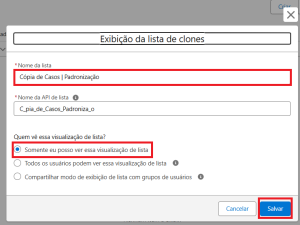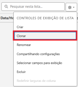 Clique em Clonar e edite o nome da nova lista.