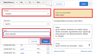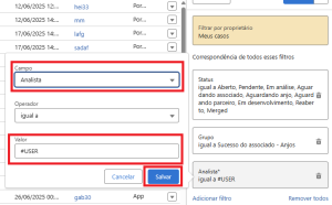 Agora se você for especialista (analistas do Sucesso e outras áreas) adicione o campo Analista (para todos os cargos), selecione seu nome e clique em Concluir e Salvar.