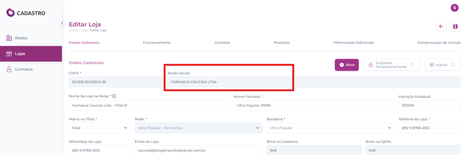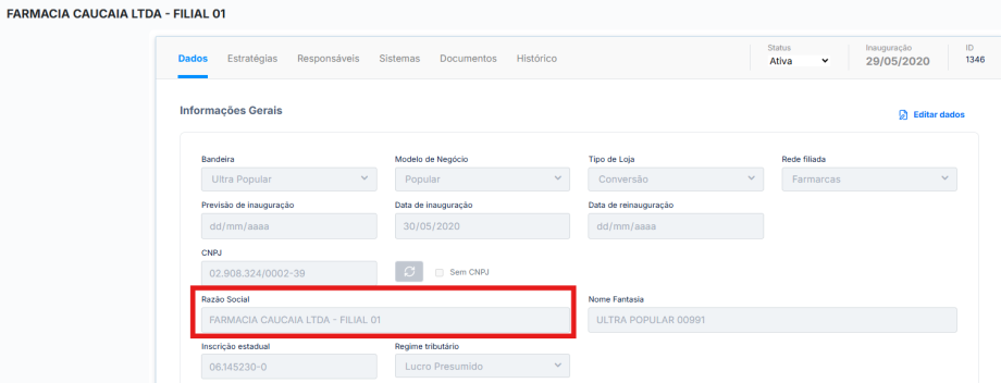 É um processo de inclusão ou alteração da razão social originalmente definida pelo time de Expansão no processo de abertura de uma nova loja solicitada pelo associado.