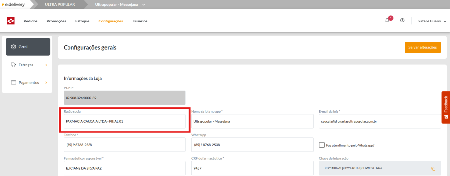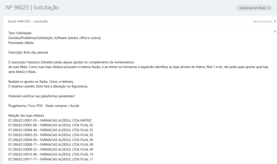 5. Abrir a tarefa no Bitrix para o time de TI ajustar a Razão Social no Plugpharma, Foco