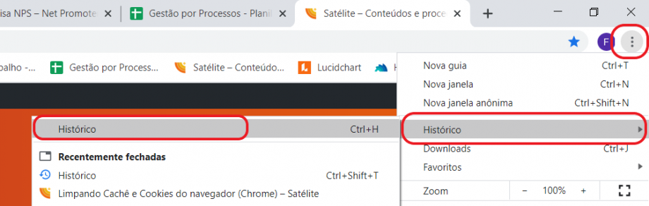 Clique no botão de menu do Chrome (o botão com três pontinhos ⋮ no canto superior direito, ao lado da barra de endereços)