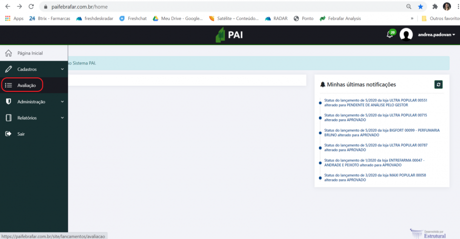 Acessar o menu “Avaliação”