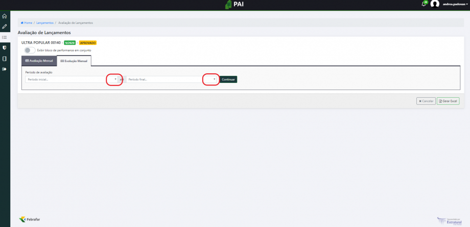Selecionar o período [Período inicial: Mês anterior / Período final: 1 ano atrás]