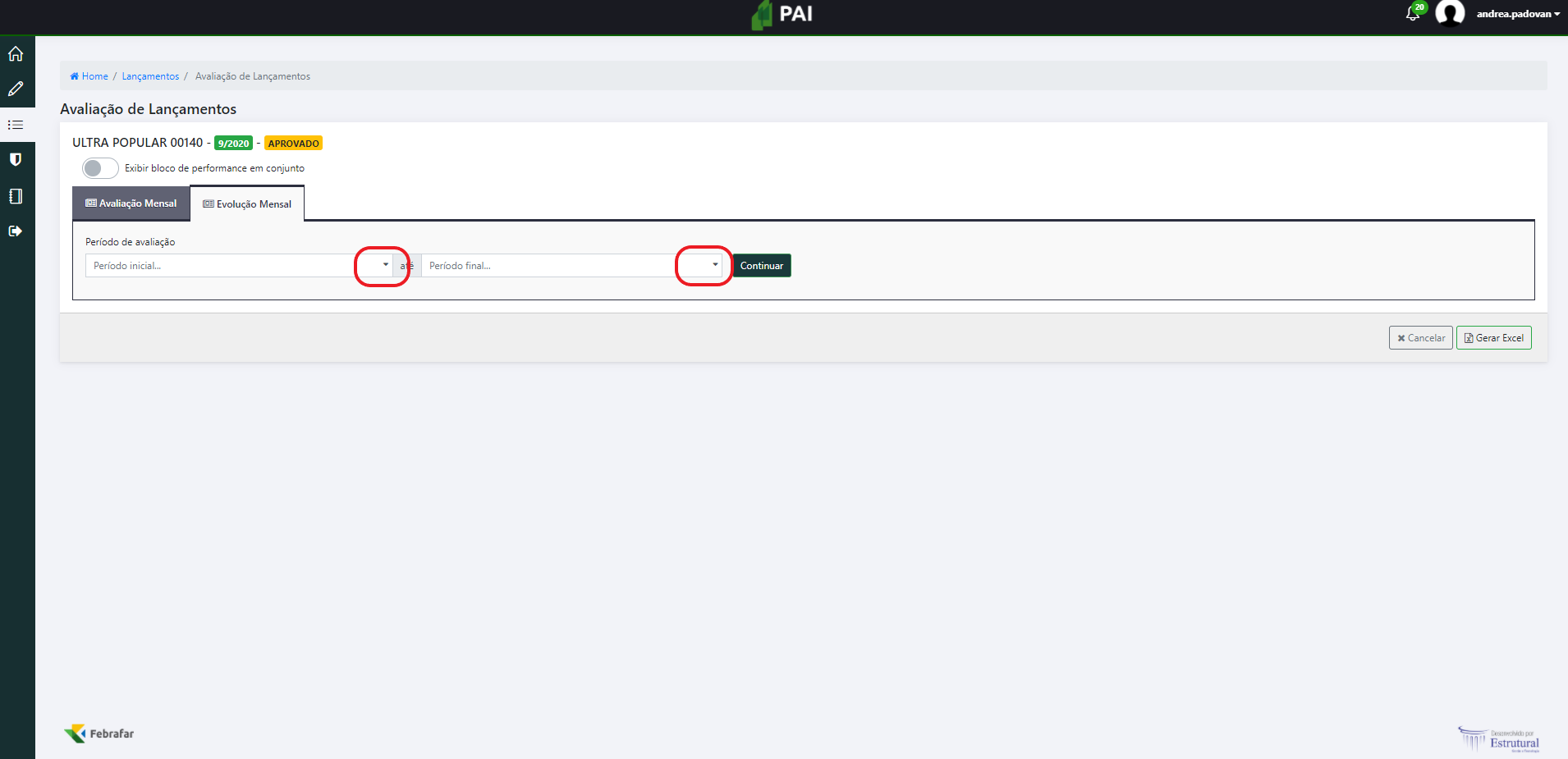 Selecionar o período [Período inicial: Mês anterior / Período final: 1 ano atrás]