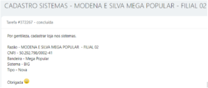 - Cadastro nos sistemas – Essa tarefa serve para cadastrar a loja em todos os sistemas da Farmarcas (Foco PDV, Plug Pharma e Acode).