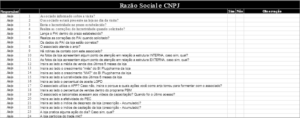 - Preencher o check-list padrão disponibilizado pelo coordenador conforme ilustrado abaixo: