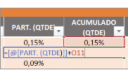 Na coluna “O”, realizar o cálculo do acumulado referente a informação de Quantidade, realizando o mesmo procedimento anterior;