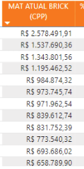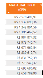 Aguardar carregar o relatório e ordenar a coluna “MAT ATUAL BRICK (CPP)”, em ordem decrescente;
