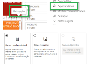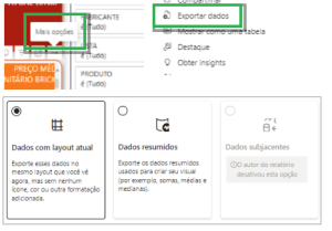 Clicar em “Mais opções” e depois “Exportar Dados”