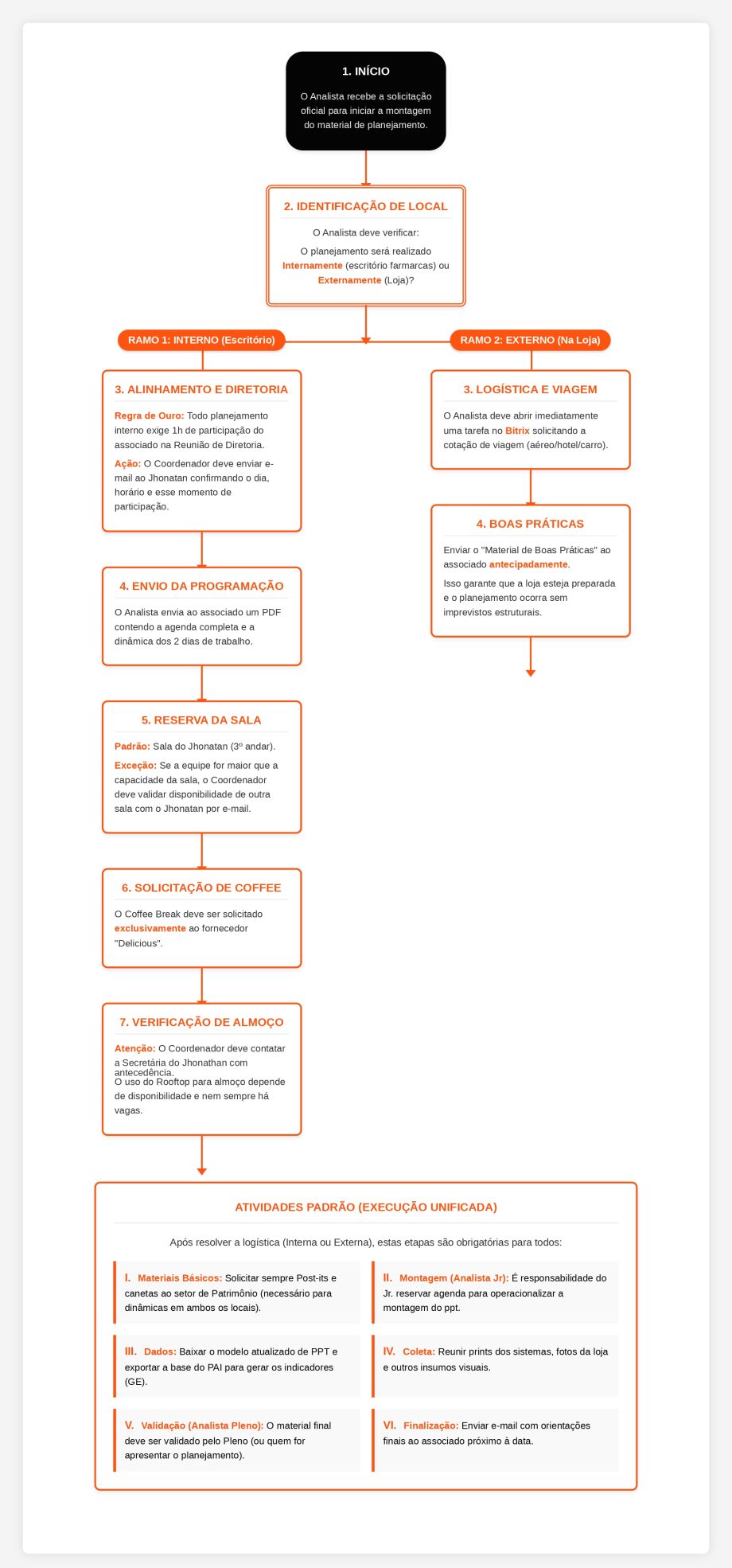 O material do planejamento é elaborado pelo Analista Jr. A condução do processo,