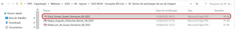 Após a assinatura, realize o download dos documentos assinados e salve na subpasta Termo de autorização de uso de imagem, localizada dentro da pasta com o nome do treinamento.