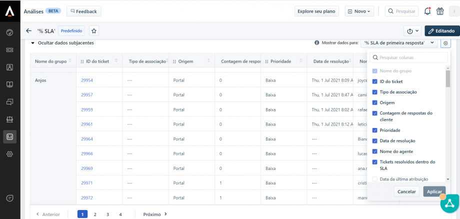 E na engrenagem, inserir os dados que deseja que seja exibido no relatório, clique em aplicar