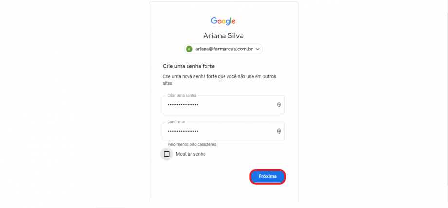 A senha da sua Conta do Google é usada para acessar vários produtos do Google, como o Gmail, Drive e Meet.
