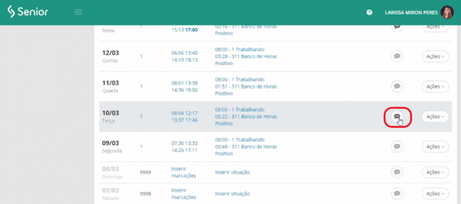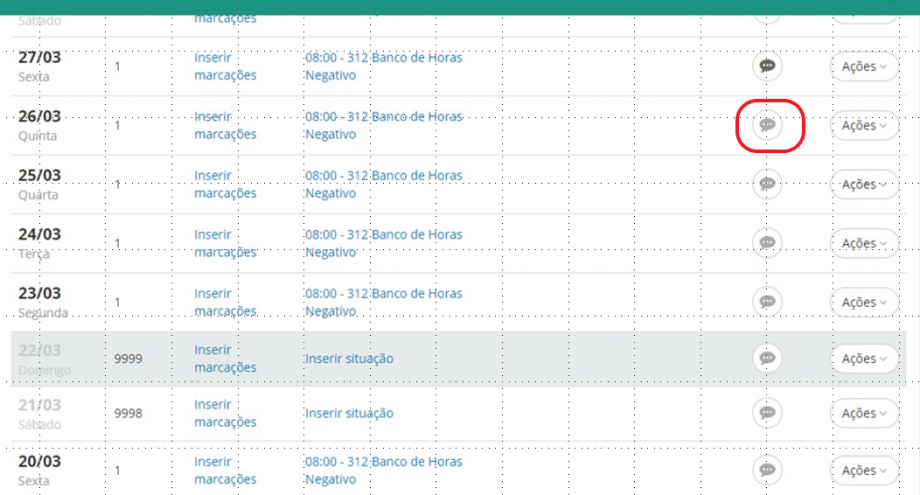 Mais abaixo, você verifica os Dias apurados, ou seja, todas as marcações do período:
