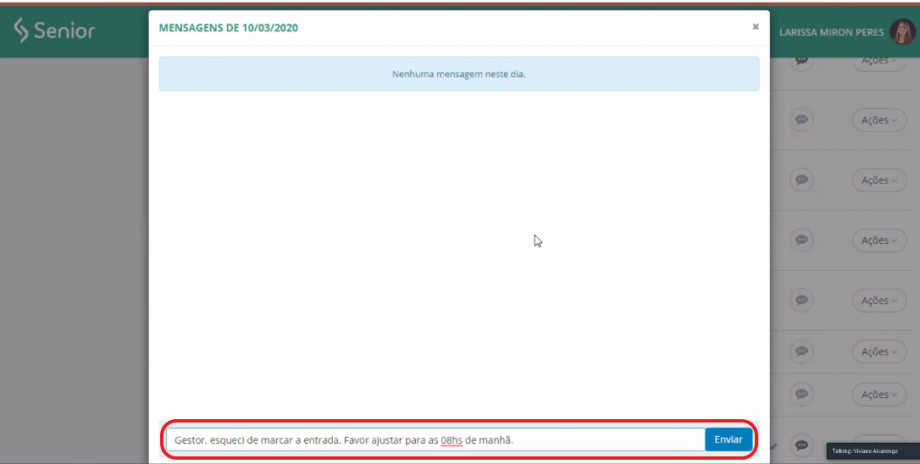 Seu gestor irá ser notificado sobre sua solicitação através do balãozinho, assim como, caso ele te responda através do campo de mensagens, você também será notificado no sistema.