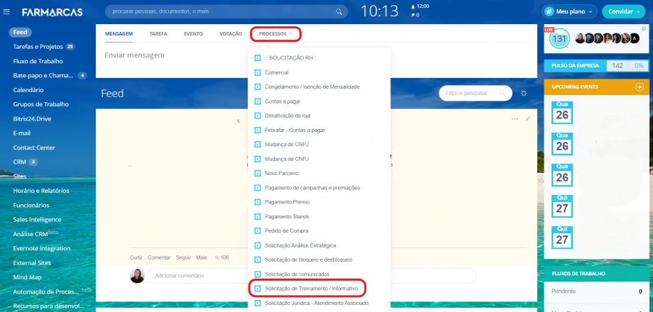 Clique no menu “Processos” e localize a opção “Solicitação de Treinamento / Informativo