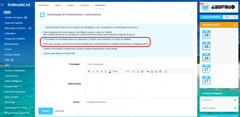 Para acionar a área de capacitação para a criação de um conteúdo, acesse o Bitrix para realizar a abertura da solicitação.
