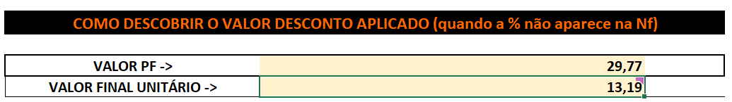 - Adicionar o desconto aplicado na nota fiscal na coluna E;