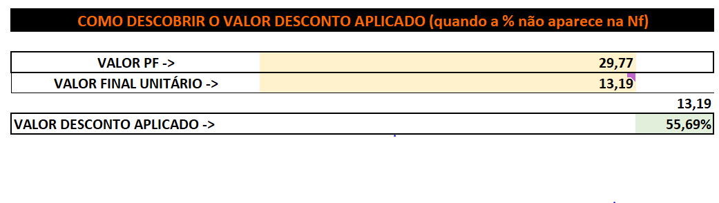 Essa é uma planilha que deve ser preenchida para identificar o valor de divergência de desconto apresentado na nota fiscal em relação a condição Farmarcas.