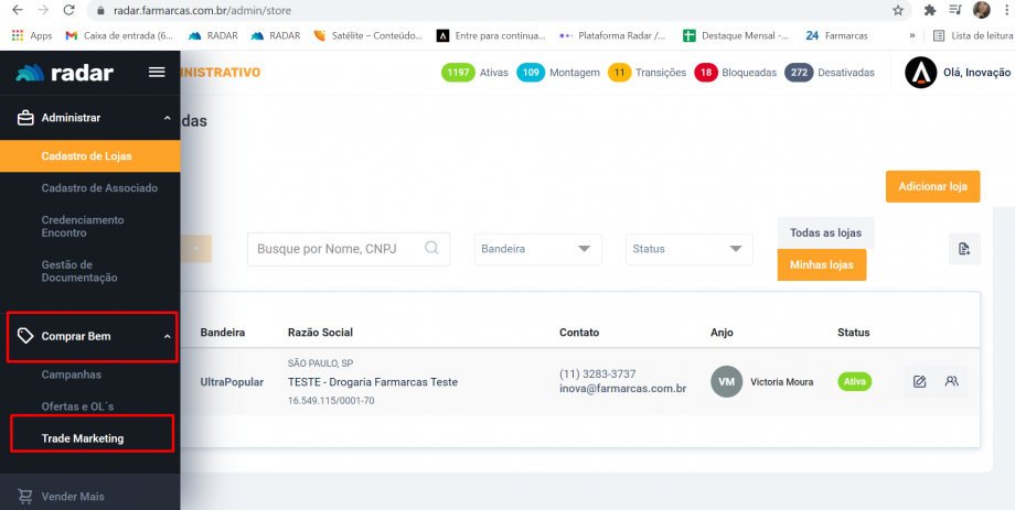 Clique em Comprar Bem e depois escolha a opção Trade Marketing