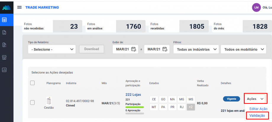A área de Trade de Marketing após a negociação e o cadastro das ações de industrias parceiras, precisa validar e aprovar as imagens das ações enviadas pelo associado.